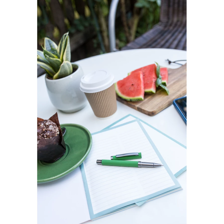 Długopis z gumowanym wykończeniem i dopasowaną kolorystycznie zatyczką z szarym klipem, żelowy wkład 0.7 mm, długość pisania do 500 m