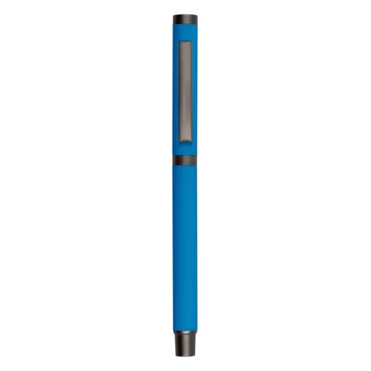 Długopis z gumowanym wykończeniem i dopasowaną kolorystycznie zatyczką z szarym klipem, żelowy wkład 0.7 mm, długość pisania do 500 m