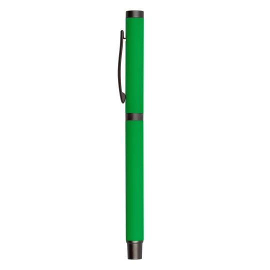 Długopis z gumowanym wykończeniem i dopasowaną kolorystycznie zatyczką z szarym klipem, żelowy wkład 0.7 mm, długość pisania do 500 m