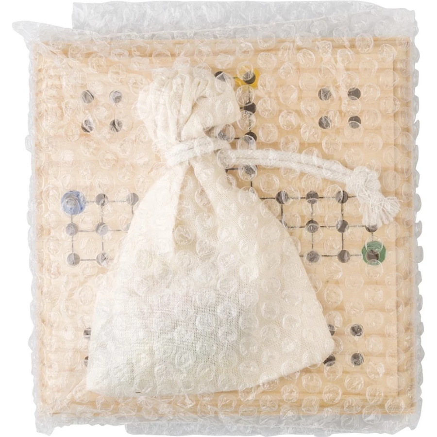 Drewniana gra planszowa "Chińczyk" w bawełnianym woreczku ze sznurkiem