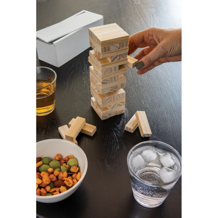 Drewniana gra zręcznościowa wieża, 48 el., gra oraz pudełko wykonana z drewna z certyfikatem FSC®, w opakowaniu upominkowym z papieru kraftowego z certyfikatem FSC®, ślad węglowy produktu: 1,39 kg CO2
