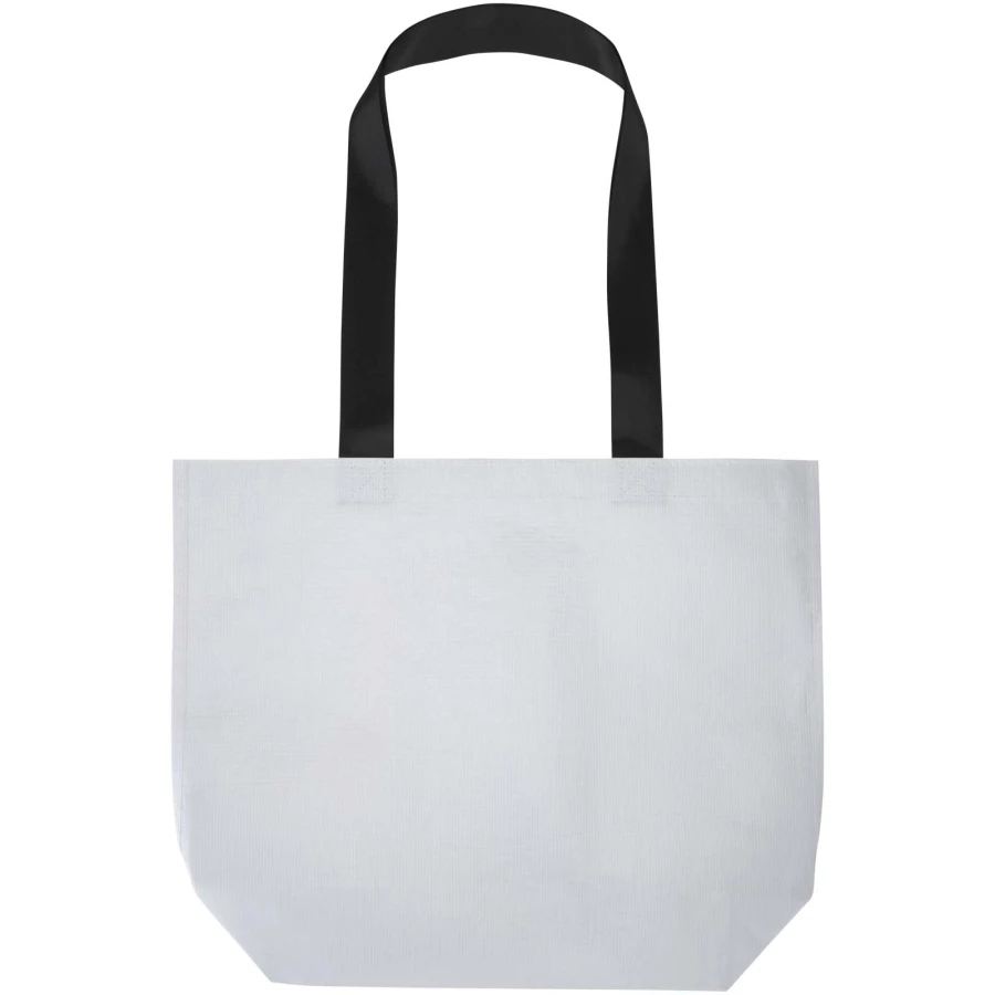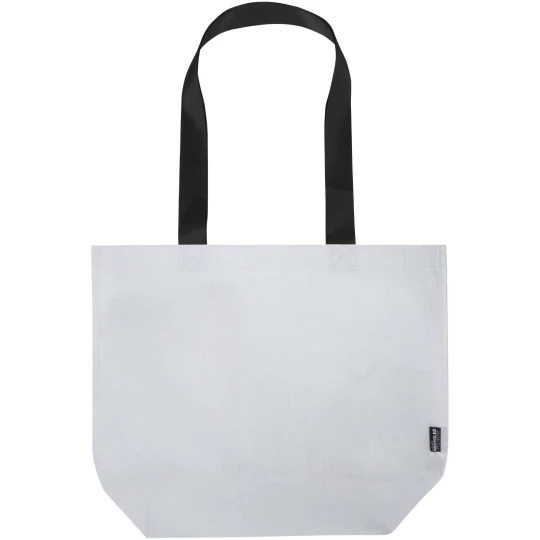 Torbę na zakupy Duo z podwójnie laminowanym dnem wykonano z tworzywa RPET z certyfikatem GRS o gramaturze 150 g/m2 z podwójną laminacją. Dzięki temu zapewnia ona większą trwałość i wodoodporność, co często okazuje się ważne. Ma przestronną, otwartą komorę główną, solidne, wzmocnione uchwyty i szerokie dno zwiększające pojemność. Umożliwia noszenie przedmiotów o wadze do 10 kg i jest stylowym i niezawodnym wyborem na codzienne zakupy, targi lub imprezy promocyjne. Pojemność: 18 litrów.