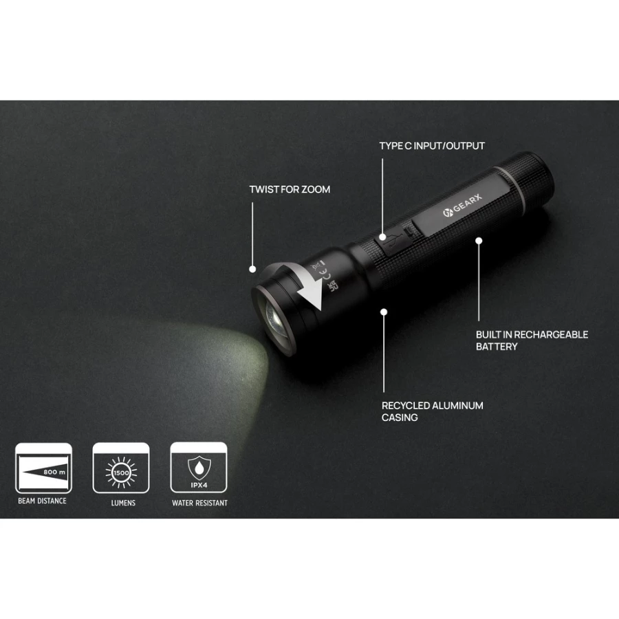 Duża latarka Gear X, ładowana przez USB, aluminium z recyklingu (P513.931)