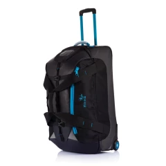 Duża torba sportowa, podróżna na kółkach, wykonana z 600D i 210D ripstop, duża przegroda główna zamykana na zamek błyskawiczny, wiele wewnętrznych kieszeni, w tym odpinana kieszeń siateczkowa, aluminiowy uchwyt, posiada miejsce na wizytówkę właściciela, ślad węglowy produktu: 29,29 kg CO2
