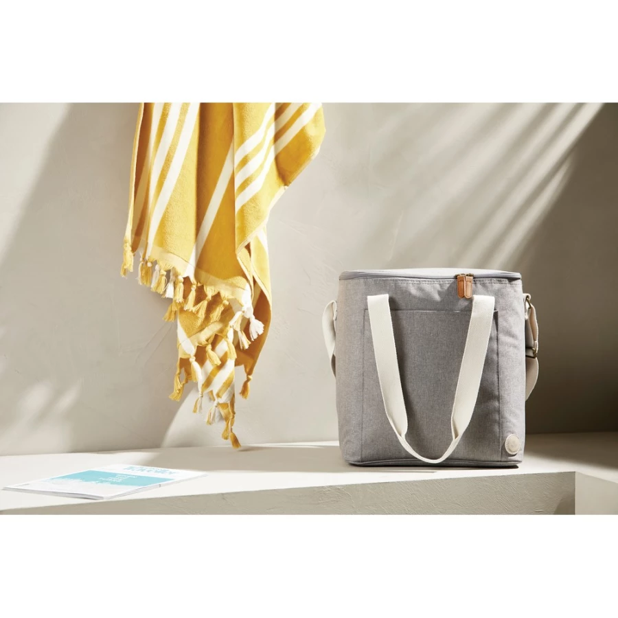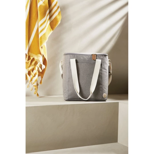 Torba termoizolacyjna, wykonana w 50% z RPET i PU, przestronna przegroda główna, kieszeń z przodu, uchwyty, regulowany pasek na ramię