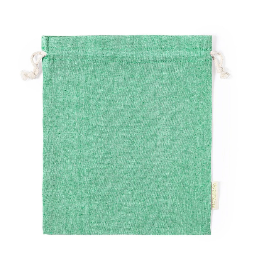 Worek ze sznurkiem z bawełny z recyklingu, duży, zgodny z certyfikatem GRS (Global RecycIed Standard)