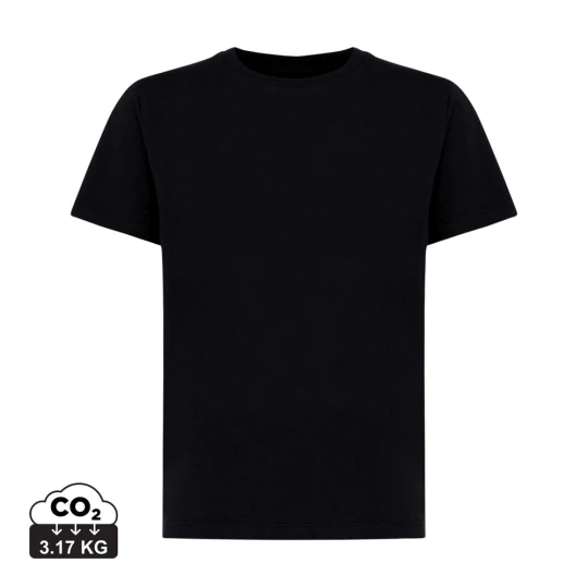 Koszulka dziecięca, regularny krój, okrągły dekolt, krótkie rękawy, wykonana w 30% z bawełny z recyklingu i w 70% z bawełny organicznej o gramaturze 160 g/m2, posiada wbudowany znacznik AWARE™, który potwierdza wykorzystanie materiałów z recyklingu, posiada kod QR na metce, który prowadzi do cyfrowego paszportu produktu, 2% wpływów z każdego sprzedanego produktu z kolekcji Impact jest przekazywane na rzecz Water.org, ślad węglowy produktu: 3,17 kg CO2