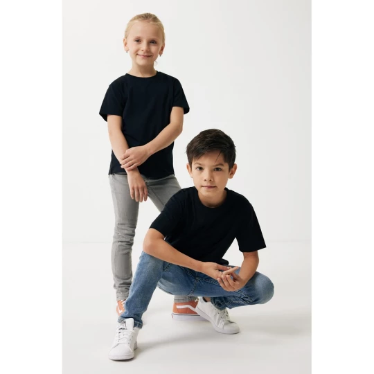 Koszulka dziecięca, regularny krój, okrągły dekolt, krótkie rękawy, wykonana w 30% z bawełny z recyklingu i w 70% z bawełny organicznej o gramaturze 160 g/m2, posiada wbudowany znacznik AWARE™, który potwierdza wykorzystanie materiałów z recyklingu, posiada kod QR na metce, który prowadzi do cyfrowego paszportu produktu, 2% wpływów z każdego sprzedanego produktu z kolekcji Impact jest przekazywane na rzecz Water.org, ślad węglowy produktu: 3,17 kg CO2