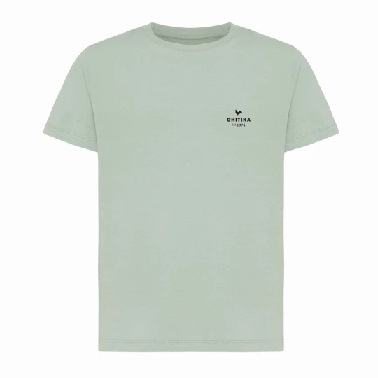 Koszulka dziecięca, regularny krój, okrągły dekolt, krótkie rękawy, wykonana w 30% z bawełny z recyklingu i w 70% z bawełny organicznej o gramaturze 160 g/m2, posiada wbudowany znacznik AWARE™, który potwierdza wykorzystanie materiałów z recyklingu, posiada kod QR na metce, który prowadzi do cyfrowego paszportu produktu, 2% wpływów z każdego sprzedanego produktu z kolekcji Impact jest przekazywane na rzecz Water.org, ślad węglowy produktu: 3,18 kg CO2