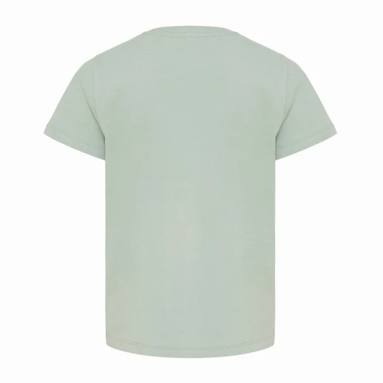 Koszulka dziecięca, regularny krój, okrągły dekolt, krótkie rękawy, wykonana w 30% z bawełny z recyklingu i w 70% z bawełny organicznej o gramaturze 160 g/m2, posiada wbudowany znacznik AWARE™, który potwierdza wykorzystanie materiałów z recyklingu, posiada kod QR na metce, który prowadzi do cyfrowego paszportu produktu, 2% wpływów z każdego sprzedanego produktu z kolekcji Impact jest przekazywane na rzecz Water.org, ślad węglowy produktu: 3,18 kg CO2