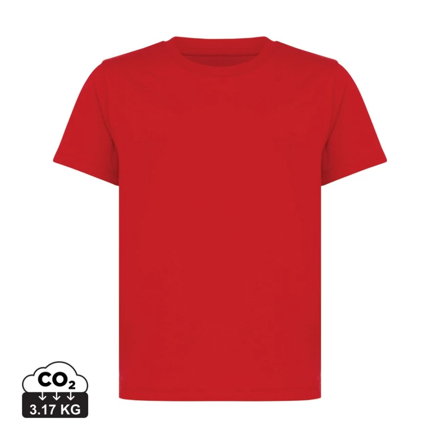 Koszulka dziecięca, regularny krój, okrągły dekolt, krótkie rękawy, wykonana w 30% z bawełny z recyklingu i w 70% z bawełny organicznej o gramaturze 160 g/m2, posiada wbudowany znacznik AWARE™, który potwierdza wykorzystanie materiałów z recyklingu, posiada kod QR na metce, który prowadzi do cyfrowego paszportu produktu, 2% wpływów z każdego sprzedanego produktu z kolekcji Impact jest przekazywane na rzecz Water.org, ślad węglowy produktu: 3,17 kg CO2