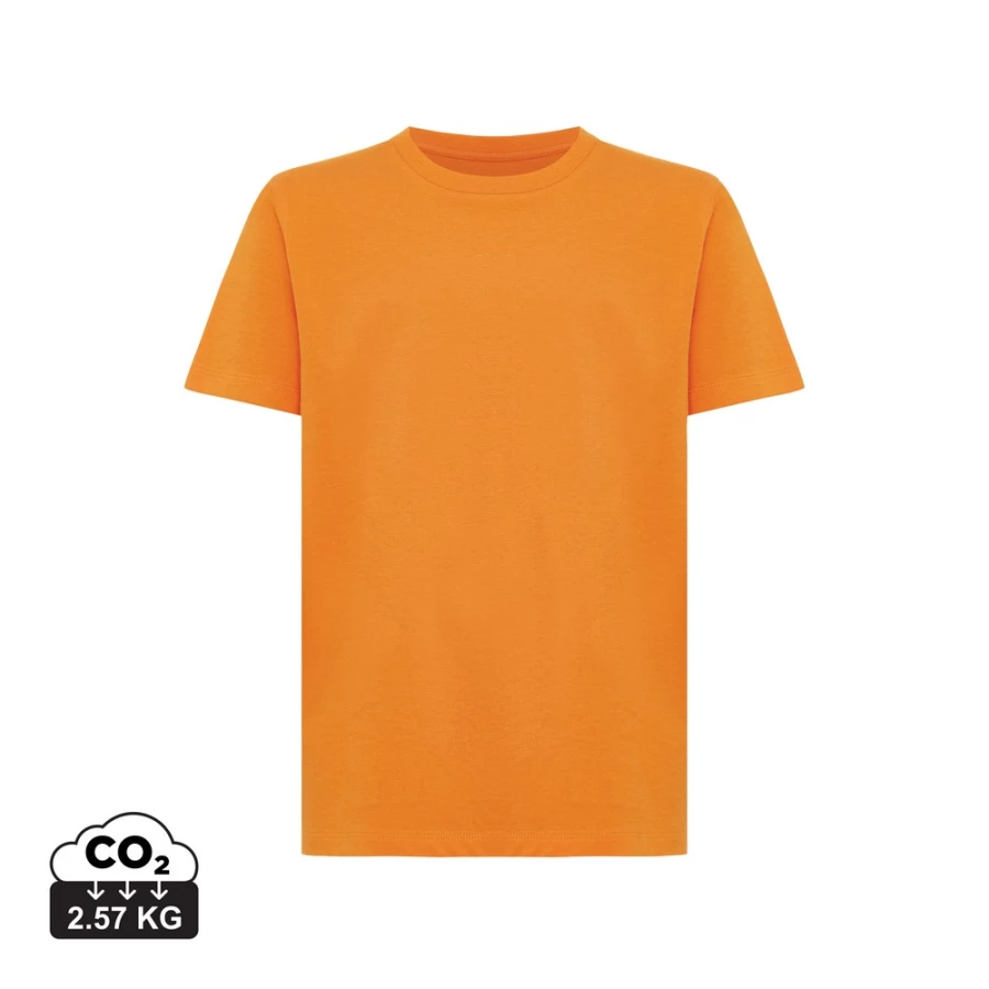 Koszulka dziecięca, regularny krój, okrągły dekolt, krótkie rękawy, wykonana w 30% z bawełny z recyklingu i w 70% z bawełny organicznej o gramaturze 160 g/m2, posiada wbudowany znacznik AWARE™, który potwierdza wykorzystanie materiałów z recyklingu, posiada kod QR na metce, który prowadzi do cyfrowego paszportu produktu, 2% wpływów z każdego sprzedanego produktu z kolekcji Impact jest przekazywane na rzecz Water.org, ślad węglowy produktu: 3,17 kg CO2