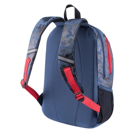 Najważniejsze cechy: Pojemność: 24 l Wymiary: 43 x 30 x 19 cm Waga: 0,5 kg Pojemna komora główna Przegroda na laptopa Regulowane szelki Dwie kieszenie na froncie Elementy odblaskowe Dwie kieszenie boczne z siateczki Specyfikacja techniczna: Skład materiałowy: 100% poliester