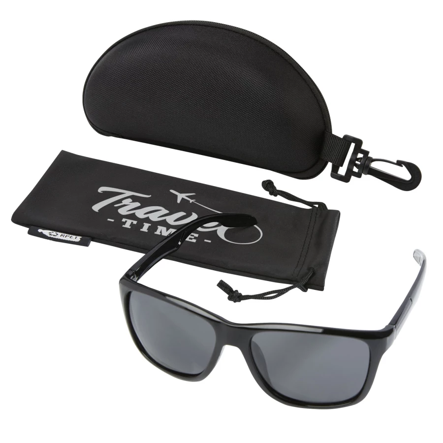 Spolaryzowane sportowe okulary przeciwsłoneczne wykonane z tworzywa sztucznego pochodzenia roślinnego. Wysokiej klasy wykończenie oprawki i zauszniki wykonane są z tworzywa Rilsan Clear G850 Rnew, polimerowej pochodnej oleju rycynowego. Materiał ten jest zrównoważoną alternatywą dla tradycyjnych tworzyw sztucznych, a także świetnie nadaje się do produkcji lekkich i elastycznych oprawek dla wygodnych okularów. Szkła są spolaryzowane, co eliminuje refleksy światła słonecznego, dzięki czemu idealnie nadają się do jazdy samochodem i wszelkich letnich i zimowych aktywności na świeżym powietrzu. Okulary te są zgodne z normą EN ISO 12312-1 i posiadają soczewki UV400 zaliczane do kategorii 3. Dostarczane z miękką torbą do przechowywania (18 x 9 cm) wykonaną z plastiku PET pochodzącego z recyklingu, która działa również jako ściereczka do czyszczenia, całość zapakowane w twardy futerał do przechowywania (18 x 8 x 6,5 cm), również wykonany z plastiku PET pochodzącego z recyklingu.