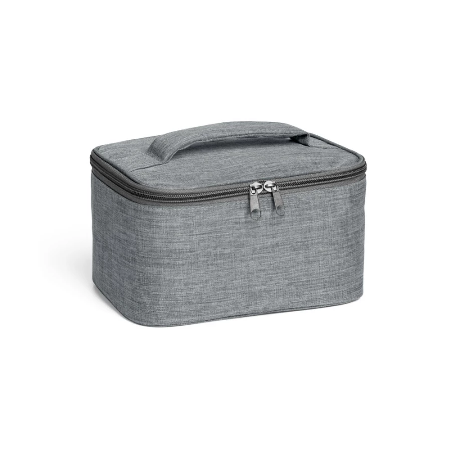 Kosmetyczka wykonana z300D o wysokiej gęstości, z wyściełanym uchwytem i podwójnym zamkiem. Wnętrze z podszewką i kieszenią na zamek. 200 x 115 x 140 mm