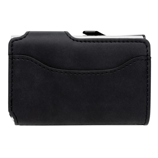 Etui na karty kredytowe, portfel z ochroną RFID, etui wykonane z wytrzymałego aluminium, portfel z PU, mieści do 10 kart lub do 6 z tłoczeniem, posiada suwak boczny do wysuwania kart, ślad węglowy produktu: 0,81 kg CO2