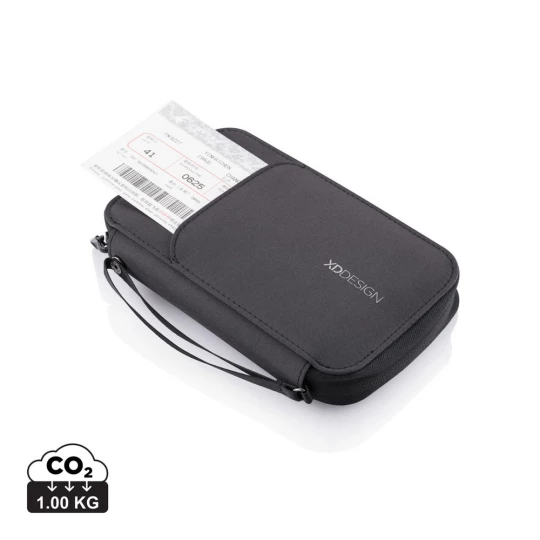 Etui na paszport z ochroną RFID, stojak na telefon, wykonany z materiałów pochodzących z recyklingu, przednia kieszeń z magnetycznym zamknięciem, dzięki specjalnej konstrukcji produkt może być również używany jako portfel lub etui na telefon (do 5,5"), wzór zastrzeżony®, ślad węglowy produktu: 1 kg CO2