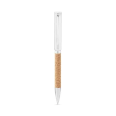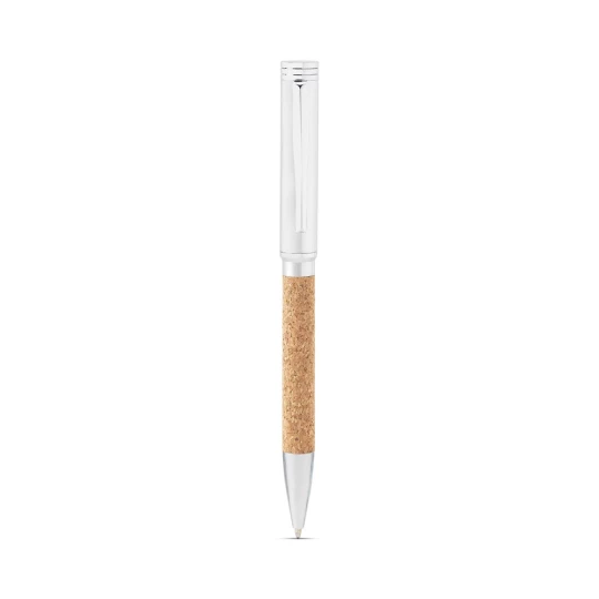 Zestaw składający się z długopisu i breloka, wykonanych z metalu i korka. Długopis posiada metalowy klips, mechanizm obrotowy i niebieski tusz. Dostarczane w eleganckim pudełku z papieru pakowego. Ponieważ produkt jest wykonany z naturalnych materiałów, kolor produktu oraz wynik drukowania mogą się różnić w zależności od produktu. Pierścień: ø 32 mm | Produkt: 112 x 18 x 7 mm Razem: 140 x 32 x 7 mm | Pióro kulkowe: średnica 11 x 137 mm | Etui: 81 x 157 x 18 mm