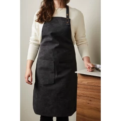 Fartuch kuchenny, wykonany z mieszanki 60% bawełny i 40% poliestru pochodzących z recyklingu, kieszeń z przodu, regulowany pasek