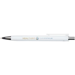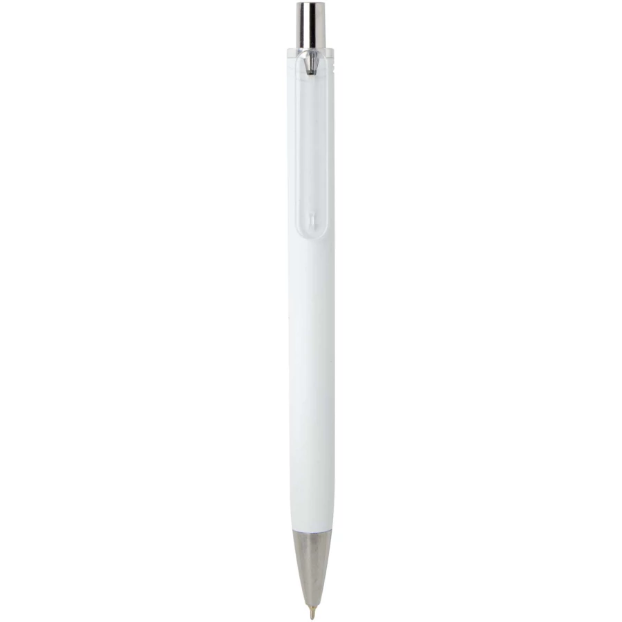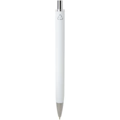 Feld długopis z metalicznym wykończeniem łączący funkcjonalność z eleganckim wyglądem. Wykonany z certyfikowanego przez RCS plastiku ABS pochodzącego z recyklingu, posiada błyszczące metaliczne wykończenie z polerowanymi chromowanymi akcentami. Płynnie działający mechanizm przycisku i wkład z atramentem półżelowym zapewniają komfortowe i płynne pisanie. Kolor tuszu długopisu: czarny Żywotność: 500 m. Rozmiar końcówki 0,7 mm.