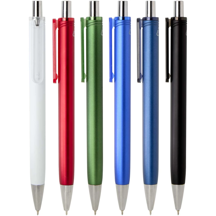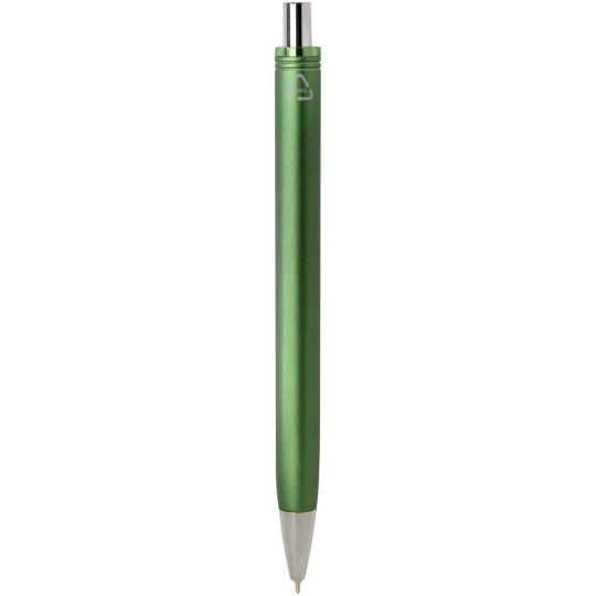 Feld długopis z metalicznym wykończeniem łączący funkcjonalność z eleganckim wyglądem. Wykonany z certyfikowanego przez RCS plastiku ABS pochodzącego z recyklingu, posiada błyszczące metaliczne wykończenie z polerowanymi chromowanymi akcentami. Płynnie działający mechanizm przycisku i wkład z atramentem półżelowym zapewniają komfortowe i płynne pisanie. Kolor tuszu długopisu: czarny Żywotność: 500 m. Rozmiar końcówki 0,7 mm.