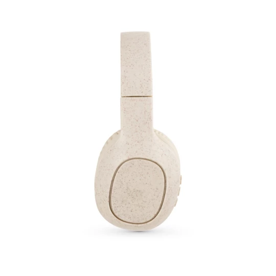 „Bezprzewodowe słuchawki z mikrofonem i składaną konstrukcją ułatwiającą przenoszenie i przechowywanie. Gdy bateria się wyczerpie, można ich używać za pomocą kabla audio.Materiał: włókno słomy pszenicznej i ABSTransmisja bezprzewodowa: BT V5'0Pojemność: 400 mAhWejście: karty Micro SD i 3.5 mm AUXFunkcje: połączenia w trybie głośnomówiącym, regulacja głośności i sterowanie listą odtwarzania na urządzeniu mobilnymZawartość: kabel USB-A / USB-C do ładowania i kabel audio 3.5 mmDostarczane: papierowe pudełko prezentowe typu kraftWymiary: Słuchawki (złożone): 185 x 185 x 74 mm | Pudełko: 120 x 90 x 160 mm