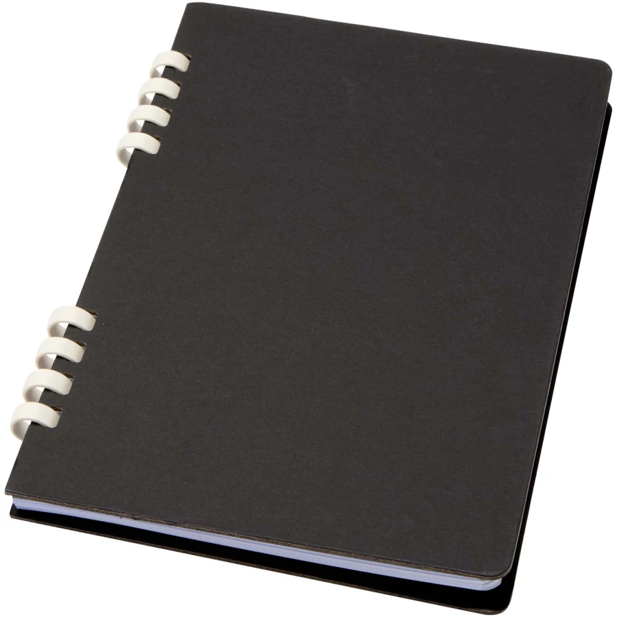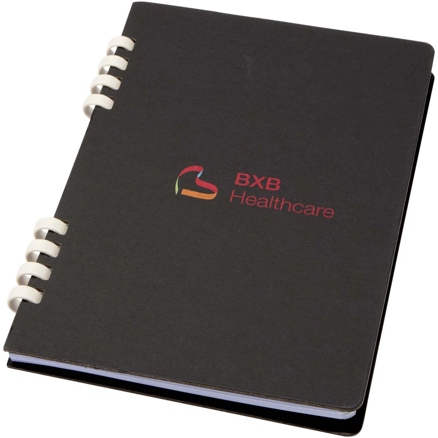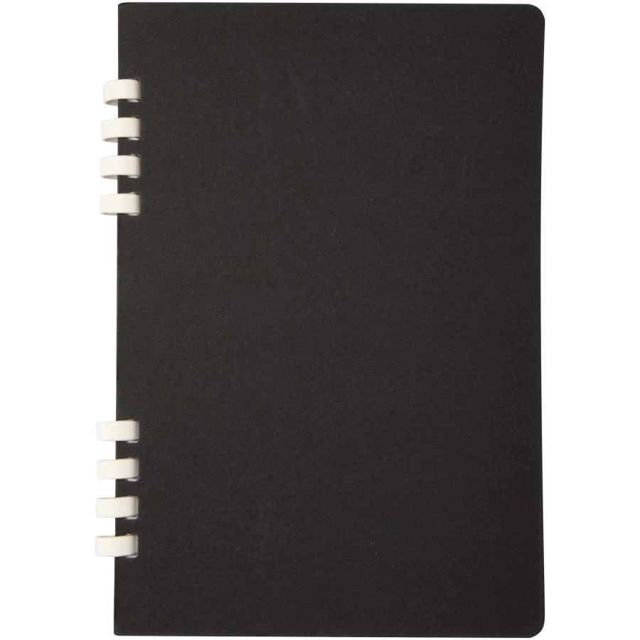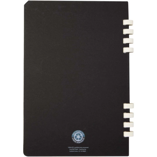 Kołonotatnik Fil w formacie A5 w twardej oprawie z 60 kartkami w linie wykonany z papieru z recyklingu o gramaturze 70 g/m², posiadającego certyfikat RCS. Wykonany w całości z materiałów pochodzących z recyklingu, jest praktycznym rozwiązaniem, które po użyciu łatwiej poddać utylizacji i recyklingowi.