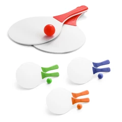 Zestaw paletek plażowych wykonanych z MDF, z piłką. Kolorowe rączki i piłka. 190 x 330 x 5 mm