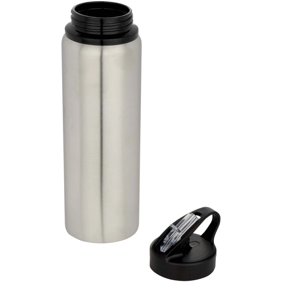 Jednościenna butelka na wodę Fitz wykonana z certyfikowanej przez RCS stali nierdzewnej z recyklingu, materiału lekkiego i trwałego. Z zakrętką, otwieranym ustnikiem do picia i uchwytem ułatwiającym przenoszenie. Pojemność: 800 ml.
