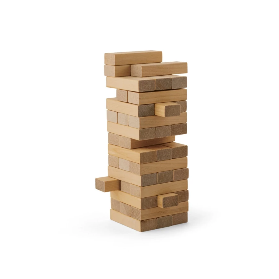 Drewniana gra składająca się z 54 elementów. Dostarczana w pudełku kartonowym z bawełnianą torbą z możliwością personalizacji. Ponieważ produkt jest wykonany z naturalnych materiałów, kolor produktu oraz wynik drukowania mogą się różnić w zależności od produktu. 55 x 55 x 185 mm