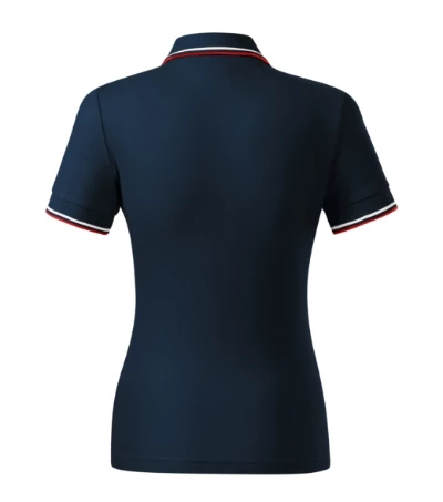 dopasowany krój z bocznymi szwami, kołnierzyk z dzianiny ściągaczowej 1:1, 2 kontrastowe paski na rękawach i kołnierzu, wąskie plisy z 4 guzikami w kolorze materiału, ostatni guzik wszyty nitką w kontrastowym kolorze, wewnętrzna część lamówki wykończona kontrastową taśmą , szew na ramionach wzmocniony taśmą, rozporki w bocznych szwach wzmocnione taśmą w kontrastowym kolorze
