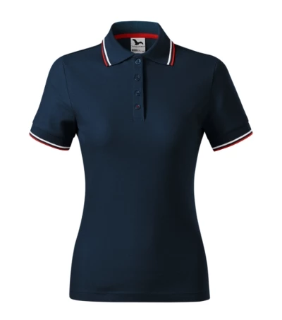 dopasowany krój z bocznymi szwami, kołnierzyk z dzianiny ściągaczowej 1:1, 2 kontrastowe paski na rękawach i kołnierzu, wąskie plisy z 4 guzikami w kolorze materiału, ostatni guzik wszyty nitką w kontrastowym kolorze, wewnętrzna część lamówki wykończona kontrastową taśmą , szew na ramionach wzmocniony taśmą, rozporki w bocznych szwach wzmocnione taśmą w kontrastowym kolorze