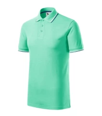 krój z bocznymi szwami, kołnierzyk z dzianiny ściągaczowej 1:1, 2 kontrastowe paski na rękawach i kołnierzu, plisy z 3 guzikami w kolorze materiału, ostatni guzik wszyty nitką w kontrastowym kolorze, wewnętrzna część lamówki wykończona kontrastową taśmą , szew na ramionach wzmocniony taśmą, rozporki w bocznych szwach wzmocnione taśmą w kontrastowym kolorze