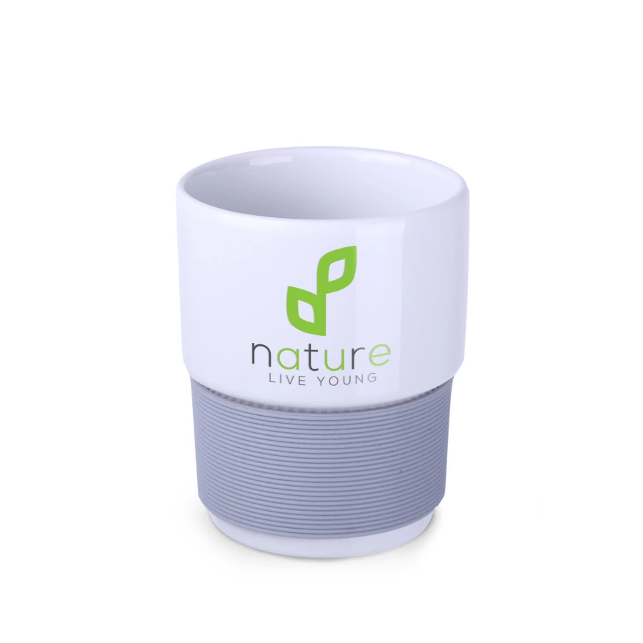 Model w stylu retro o prostym designie, wykonany z europejskiej porcelany. Jego kształt umożliwia sztaplowanie. Posiada dostępną w wariantach kolorystycznych elastyczną opaskę o grubości 40 mm, która chroni dłonie przed poparzeniem.