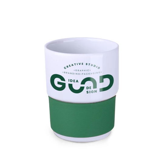 Model w stylu retro o prostym designie, wykonany z europejskiej porcelany. Jego kształt umożliwia sztaplowanie. Posiada dostępną w wariantach kolorystycznych elastyczną opaskę o grubości 40 mm, która chroni dłonie przed poparzeniem.