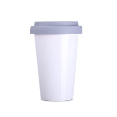 Porcelanowy kubek reklamowy z polimerową przykrywką chroniącą przed przypadkowym rozlaniem napoju. Model skierowany dla osób aktywnych, miłośników wycieczek i podróży. Dzięki rzadko spotykanej, wewnętrznej strukturze podwójnych ścianek z porcelany kubek ten charakteryzuje się podwyższonym poziomem izolacji termicznej. Przykrywka dostępna jest w kilku kolorach.