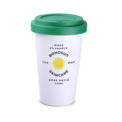Porcelanowy kubek reklamowy z polimerową przykrywką chroniącą przed przypadkowym rozlaniem napoju. Model skierowany dla osób aktywnych, miłośników wycieczek i podróży. Dzięki rzadko spotykanej, wewnętrznej strukturze podwójnych ścianek z porcelany kubek ten charakteryzuje się podwyższonym poziomem izolacji termicznej. Przykrywka dostępna jest w kilku kolorach.