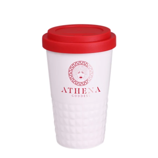 Designerski kubek mobilny wykonany z porcelany. Posiada charakterystyczne wykończenie dolnej części w postaci wypustek. Model skierowany dla osób aktywnych, miłośników wycieczek i podróży. Dzięki rzadko spotykanej, wewnętrznej strukturze podwójnych ścianek z porcelany charakteryzuje się podwyższonym poziomem izolacji termicznej. Posiada przykrywkę dostępną w 8 kolorach: biały, pomarańczowym, czerwonym, zielonym, granatowym, brązowym, czarnym i szarym.
