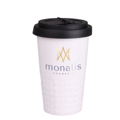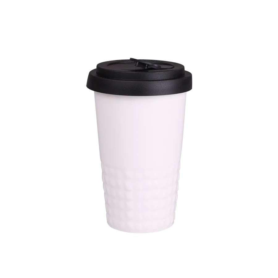 Designerski kubek mobilny wykonany z porcelany. Posiada charakterystyczne wykończenie dolnej części w postaci wypustek. Model skierowany dla osób aktywnych, miłośników wycieczek i podróży. Dzięki rzadko spotykanej, wewnętrznej strukturze podwójnych ścianek z porcelany charakteryzuje się podwyższonym poziomem izolacji termicznej. Posiada przykrywkę ze szczelną zatyczką dostępną w kilku kolorach.
