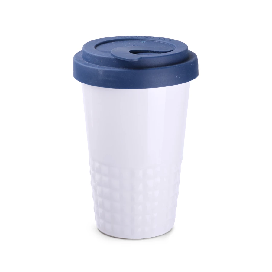 Designerski kubek mobilny wykonany z porcelany. Posiada charakterystyczne wykończenie dolnej części w postaci wypustek. Model skierowany dla osób aktywnych, miłośników wycieczek i podróży. Dzięki rzadko spotykanej, wewnętrznej strukturze podwójnych ścianek z porcelany charakteryzuje się podwyższonym poziomem izolacji termicznej. Posiada przykrywkę ze szczelną zatyczką dostępną w kilku kolorach.