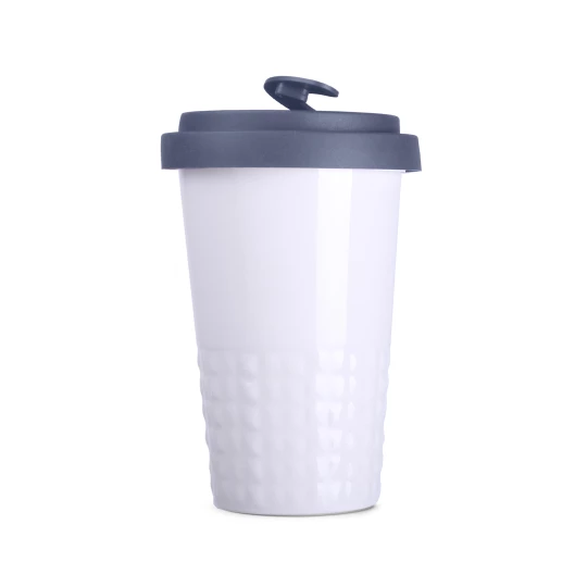 Designerski kubek mobilny wykonany z porcelany. Posiada charakterystyczne wykończenie dolnej części w postaci wypustek. Model skierowany dla osób aktywnych, miłośników wycieczek i podróży. Dzięki rzadko spotykanej, wewnętrznej strukturze podwójnych ścianek z porcelany charakteryzuje się podwyższonym poziomem izolacji termicznej. Posiada przykrywkę ze szczelną zatyczką dostępną w kilku kolorach.