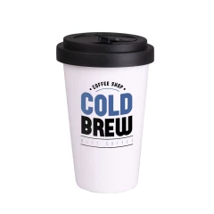 Porcelanowy kubek reklamowy z polimerową przykrywką z dodatkową zatyczką chroniącą przed przypadkowym rozlaniem napoju. Model skierowany dla osób aktywnych, miłośników wycieczek i podróży. Dzięki rzadko spotykanej, wewnętrznej strukturze podwójnych ścianek z porcelany kubek ten charakteryzuje się podwyższonym poziomem izolacji termicznej. Przykrywka dostępna jest w kilku kolorach.