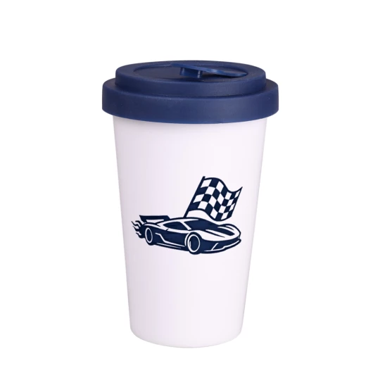 Porcelanowy kubek reklamowy z polimerową przykrywką z dodatkową zatyczką chroniącą przed przypadkowym rozlaniem napoju. Model skierowany dla osób aktywnych, miłośników wycieczek i podróży. Dzięki rzadko spotykanej, wewnętrznej strukturze podwójnych ścianek z porcelany kubek ten charakteryzuje się podwyższonym poziomem izolacji termicznej. Przykrywka dostępna jest w kilku kolorach.