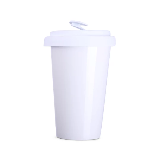 Porcelanowy kubek reklamowy z polimerową przykrywką z dodatkową zatyczką chroniącą przed przypadkowym rozlaniem napoju. Model skierowany dla osób aktywnych, miłośników wycieczek i podróży. Dzięki rzadko spotykanej, wewnętrznej strukturze podwójnych ścianek z porcelany kubek ten charakteryzuje się podwyższonym poziomem izolacji termicznej. Przykrywka dostępna jest w kilku kolorach.
