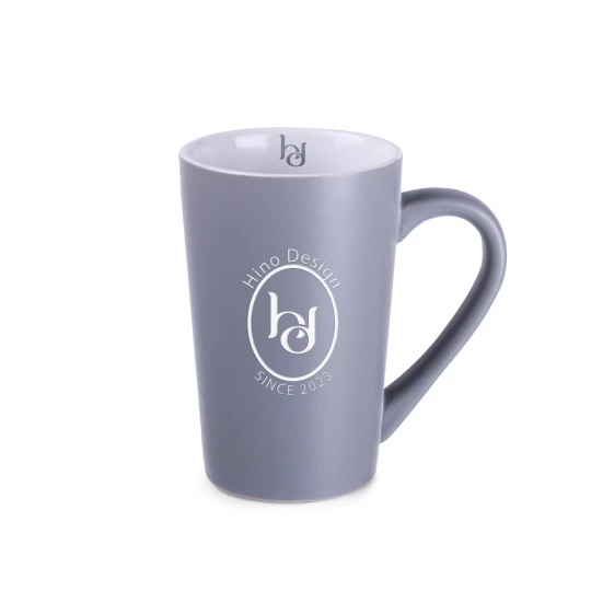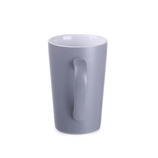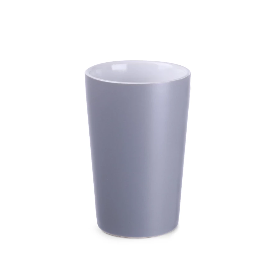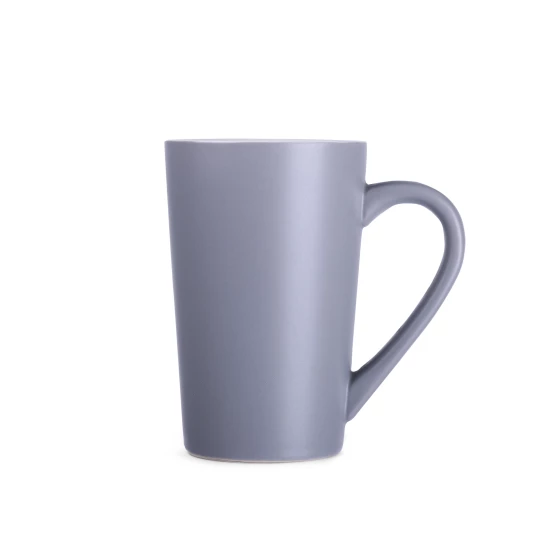 Klasyczny kubek o trapezowym kształcie i wysokich ściankach. Wyróżnia go eleganckie szare matowe wykończenie. Doskonale nadaje się do wykonywania na nim dużych zdobień.