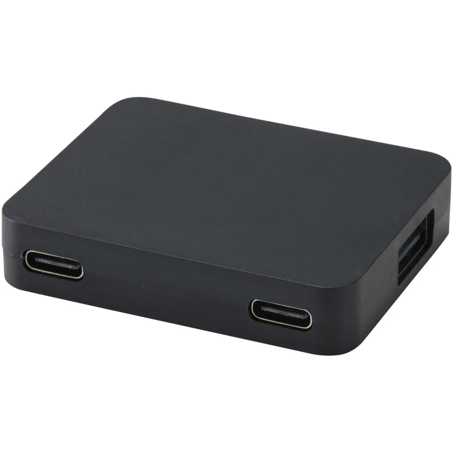 Gaia 4-portowy hub USB z wyjściem USB-A i typu C oraz podwójnym wejściem — wykonany z tworzyw sztucznych pochodzących z recyklingu (12444990)