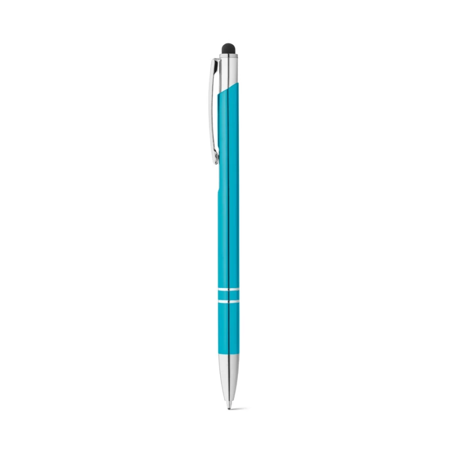 Aluminiowy długopis z końcówką dotykową i klipem. Dostępny w szerokiej gamie kolorów. Niebieski tusz ø8 x 142 mm