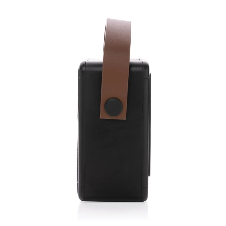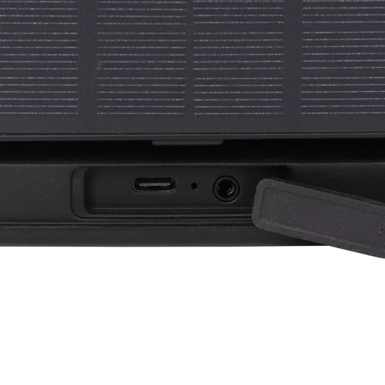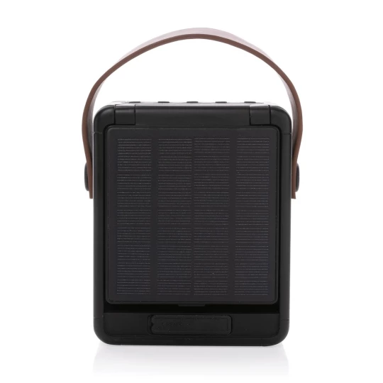 Głośnik bezprzewodowy 12W, BT 5.3, zintegrowany panel słoneczny do ładowania głośnika, lampka LED, prędkość ładowania solarnego 5V/0.3A, wbudowany mikrofon, funkcja odbierania połączeń, wbudowany akumulator o pojemności 2000 mAh umożliwia odtwarzanie muzyki do 8 godzin, zasięg do 10 m, kabel z TPE z recyklingu z certyfikatem RCS, ślad węglowy produktu: 6,66 kg CO2