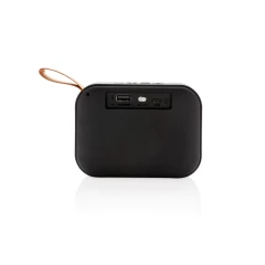 Głośnik bezprzewodowy 3W, BT 5.0, obudowa wykonana z miękkiego w dotyku ABS i tkaniny, gumowe paski w dolnej części urządzenia poprawiające stabilność i jakość dźwięku, w pełni naładowany akumulator o pojemności 300 mAh umożliwia odtwarzanie muzyki do 3 godzin, głośnika można używać również za pomocą kabla audio, kompatybilny ze wszystkimi rodzajami telefonów, kable audio i micro USB do ładowania w komplecie, zasięg do 10 m, ślad węglowy produktu: 2,04 kg CO2