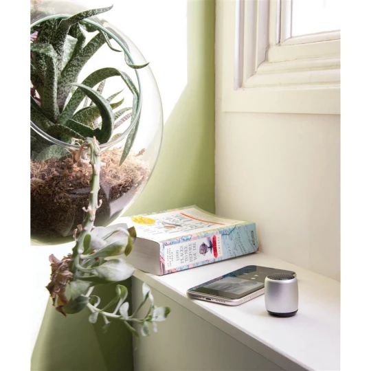 Głośnik bezprzewodowy 3W, BT 5.0, kieszonkowy rozmiar, wykonany z wytrzymałego aluminium, w pełni naładowany akumulator o pojemności 180 mAh pozwala na odtwarzanie muzyki do 3 godzin, zasięg do 10m, kabel do ładowania z TPE bez dodatku PVC w komplecie, ślad węglowy produktu: 0,64 kg CO2